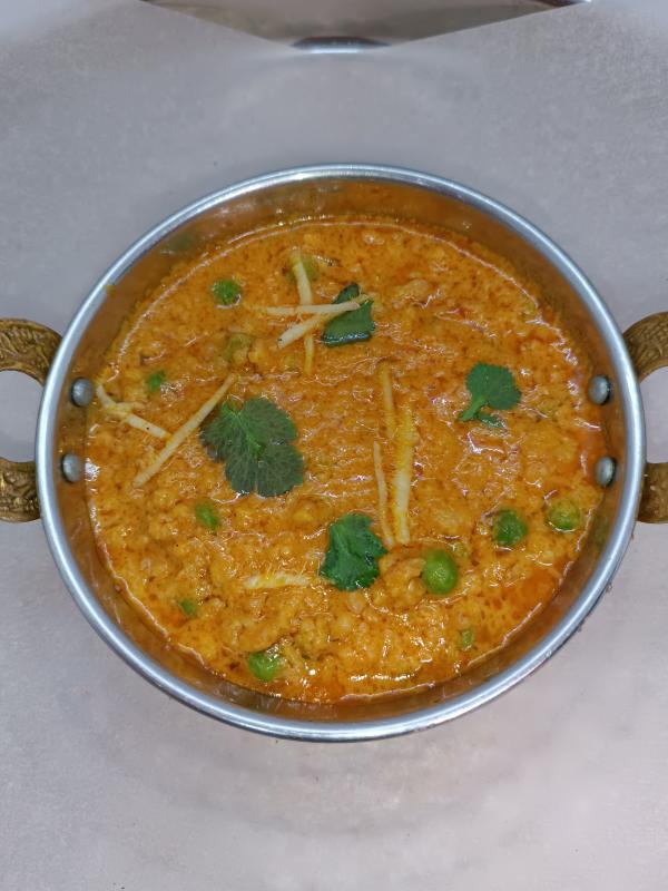 курица, лук, кешью, имбирно-чесночная паста, специи и творог/йогурт,Подливка сделана из пасты из коричневого лука и орехов, которая придает этому муглайскому блюду кремовую текстуру.