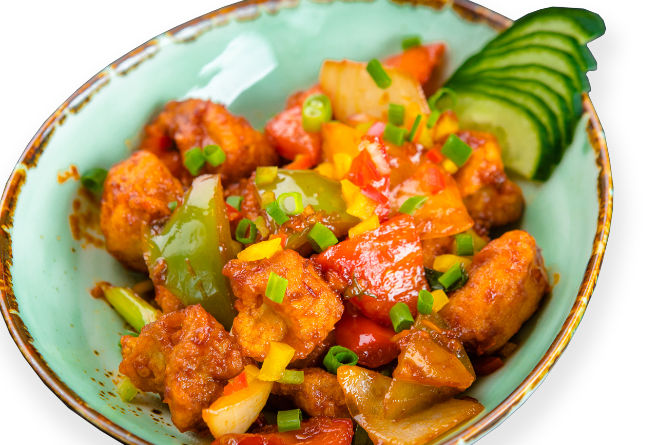 Кубики домашнего сыра, обжаренные с луком, болгарским перцем, чили и индийскими специями
