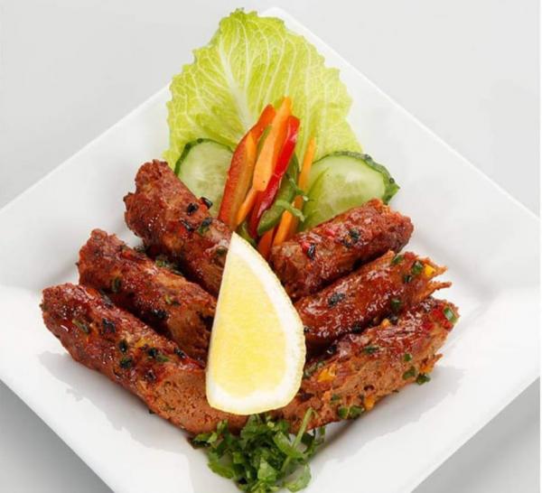 Кебаб из рубленного филе цыпленка со специями. Подается с мятным соусом и тандур салатом